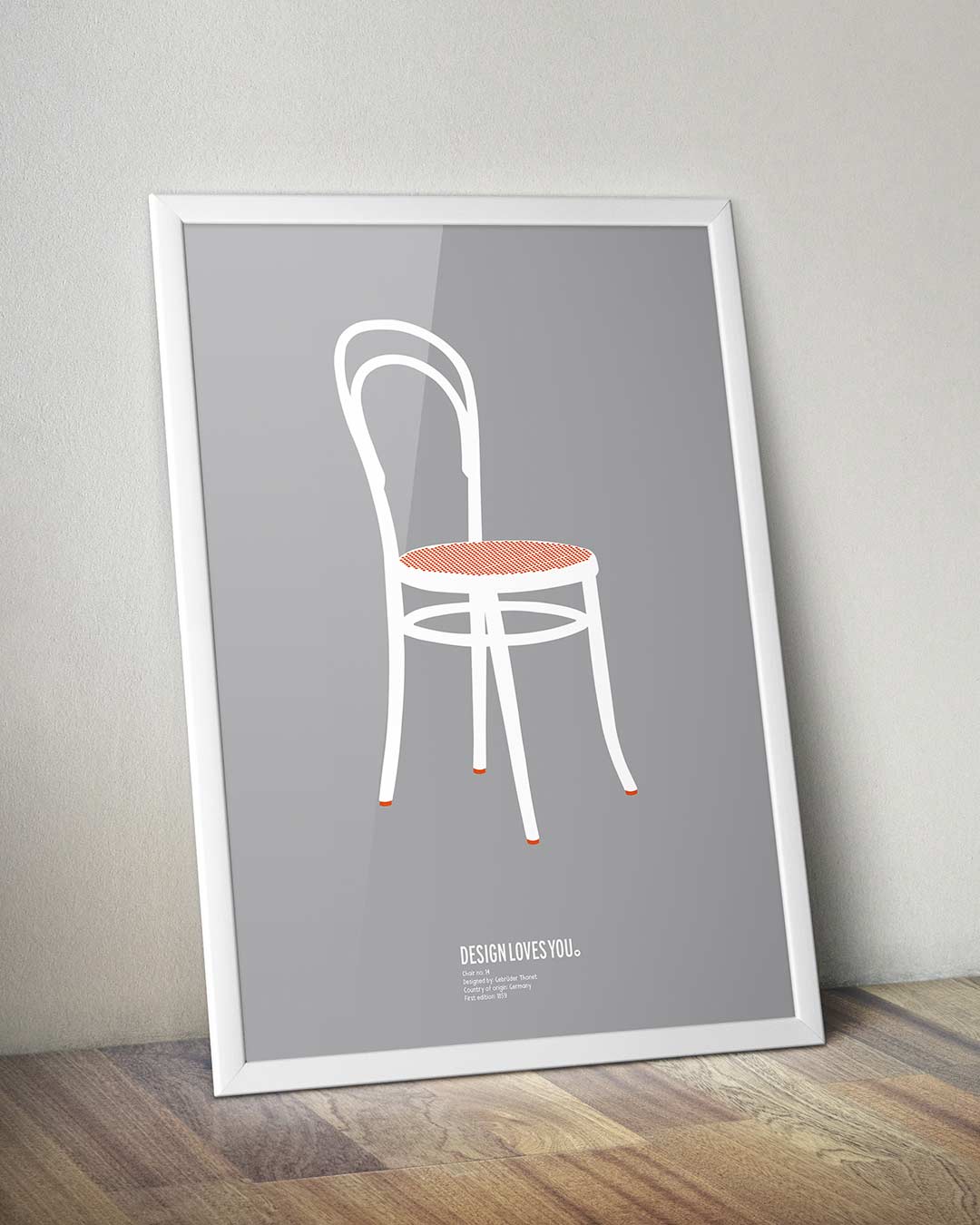Available in 4 designs: Chair No. 14 (Gebrüder Thonet), Chair S33 (Mart Stam) ,Jieldé Standard Lamp (Jean-Louis Domecq) and Revolt Chair (Friso Kramer)