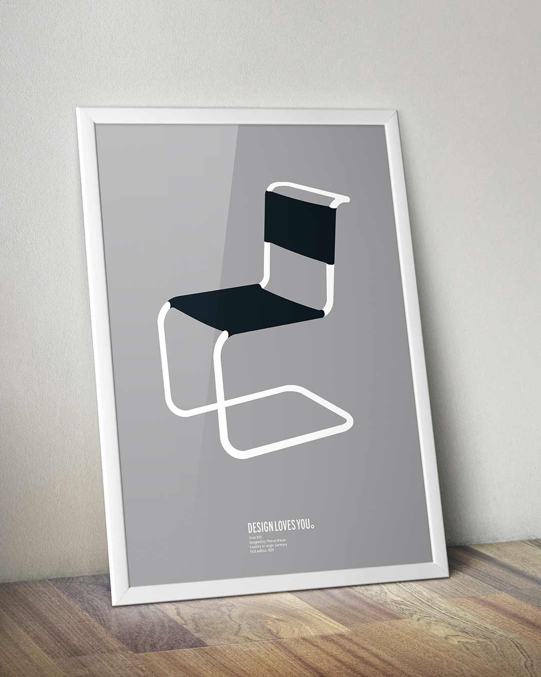 Available in 4 designs: Chair No. 14 (Gebrüder Thonet), Chair S33 (Mart Stam), Revolt Chair (Friso Kramer), Standard No. 4 (Jean Prouvé) and Tolix A Chair (Xavier Pauchard)
